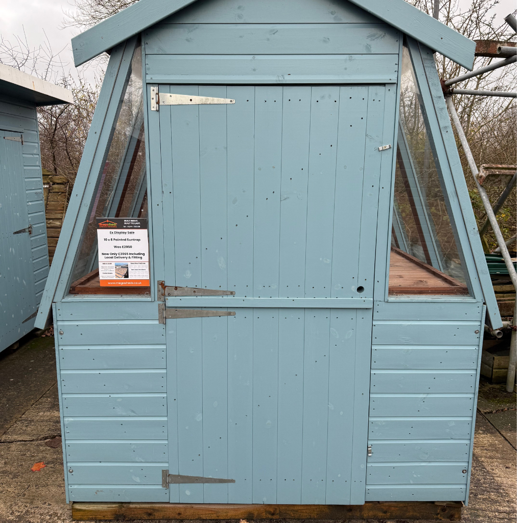 Ex Display Ex Display 10ft x 6ft Painted Suntrap Factory Painted this building can be seen at our Chester site .Local Fitting Is Included onto your solid level base installed. Megasheds have different base solutions if you need a base please contact us to discuss